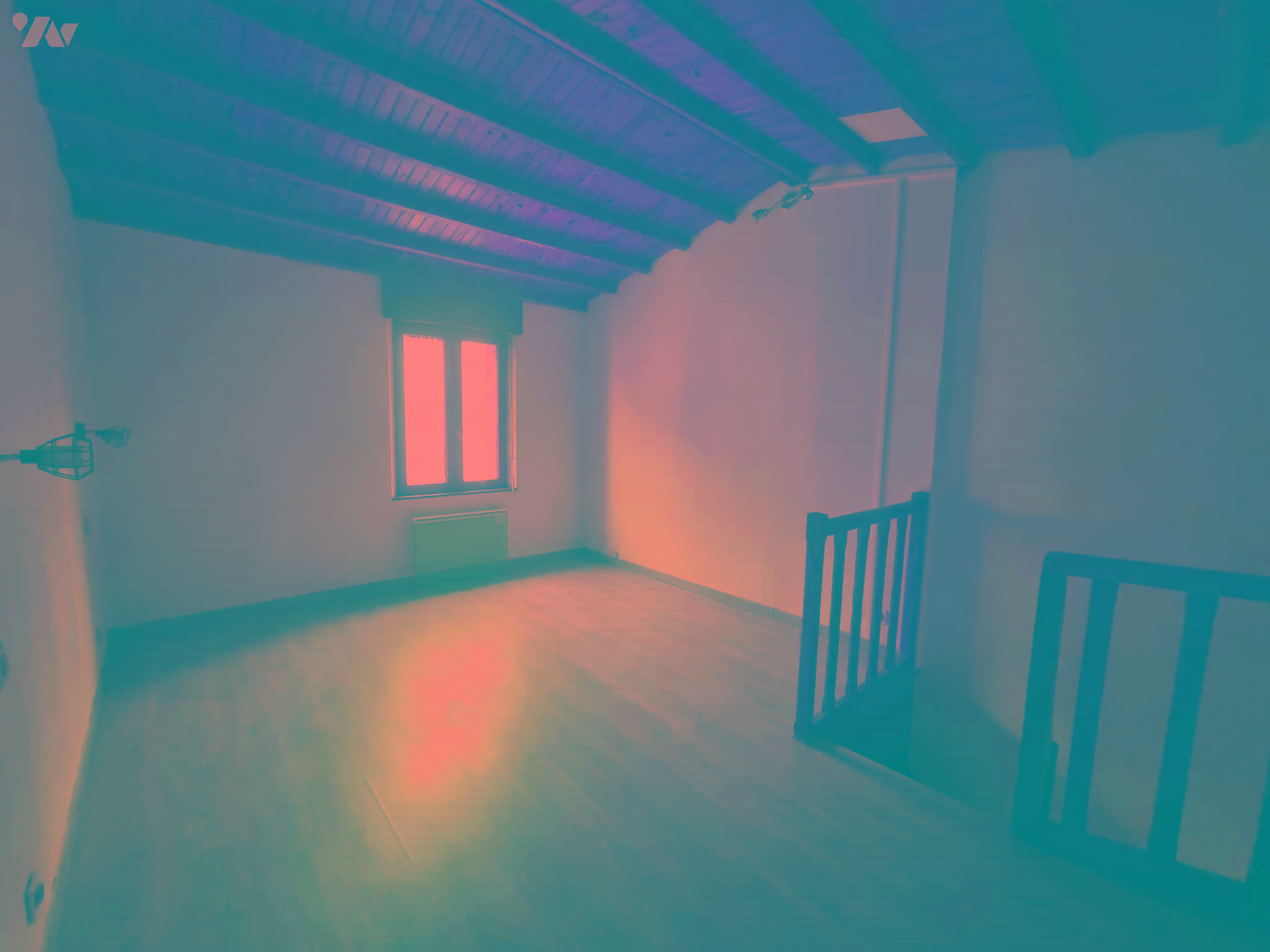 - Au 1er étage : grande chambre et salle de douche